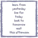 Learn from yesterday, live for today, look to tomorrow, rest this afternoon. Just because you take a different path, it doesn't mean you're lost. May you be blessed to blaze your own way without shame or regret. Walk confidently in step with God. |